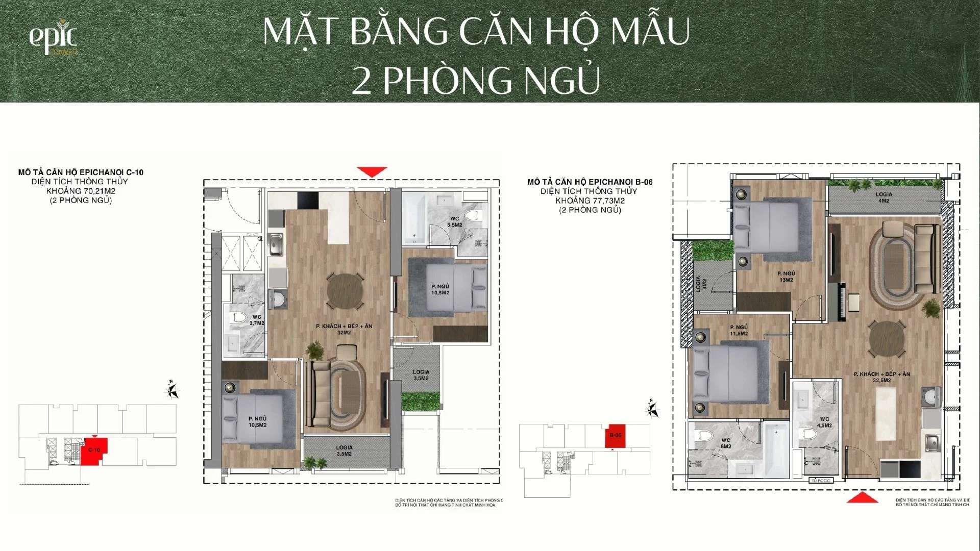 Thiết kế căn hộ 2 ngủ mẫu C10 và B06 Epic Tower