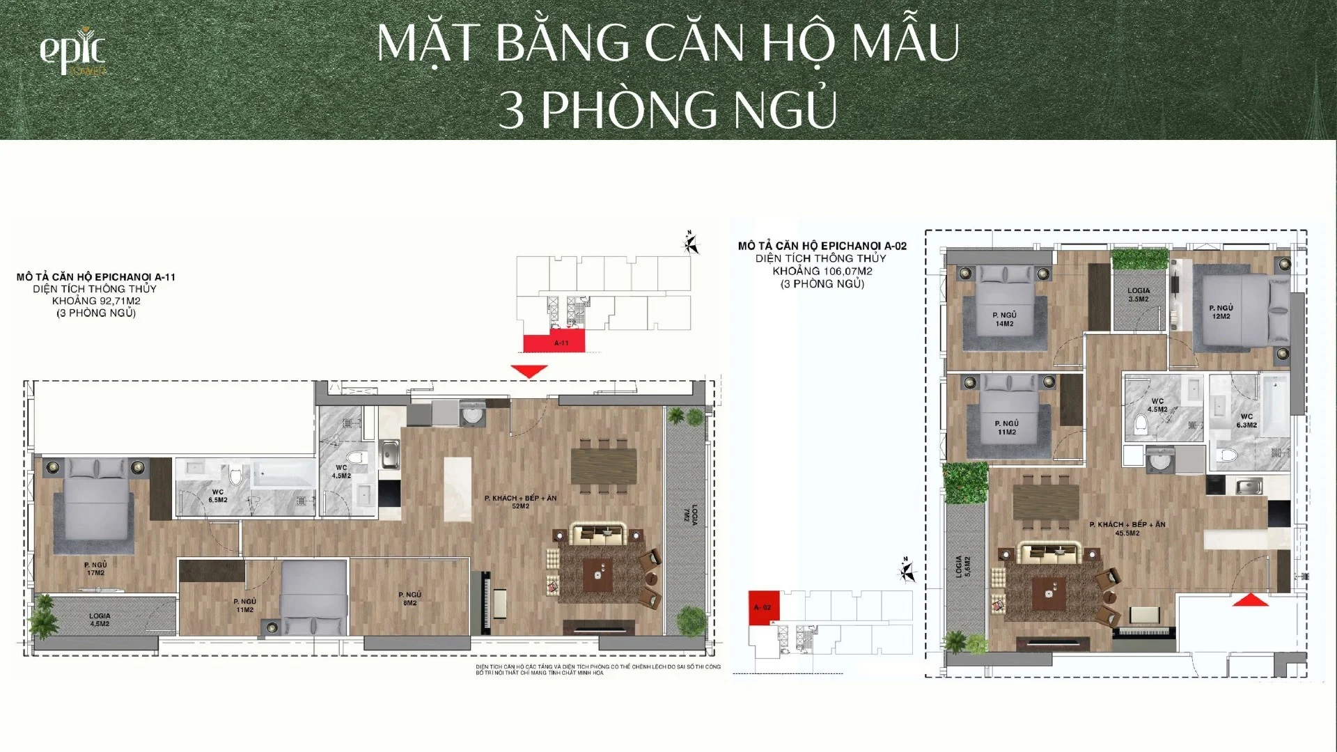Thiết kế căn hộ 3 ngủ mẫu A11 và A02 Epic Tower