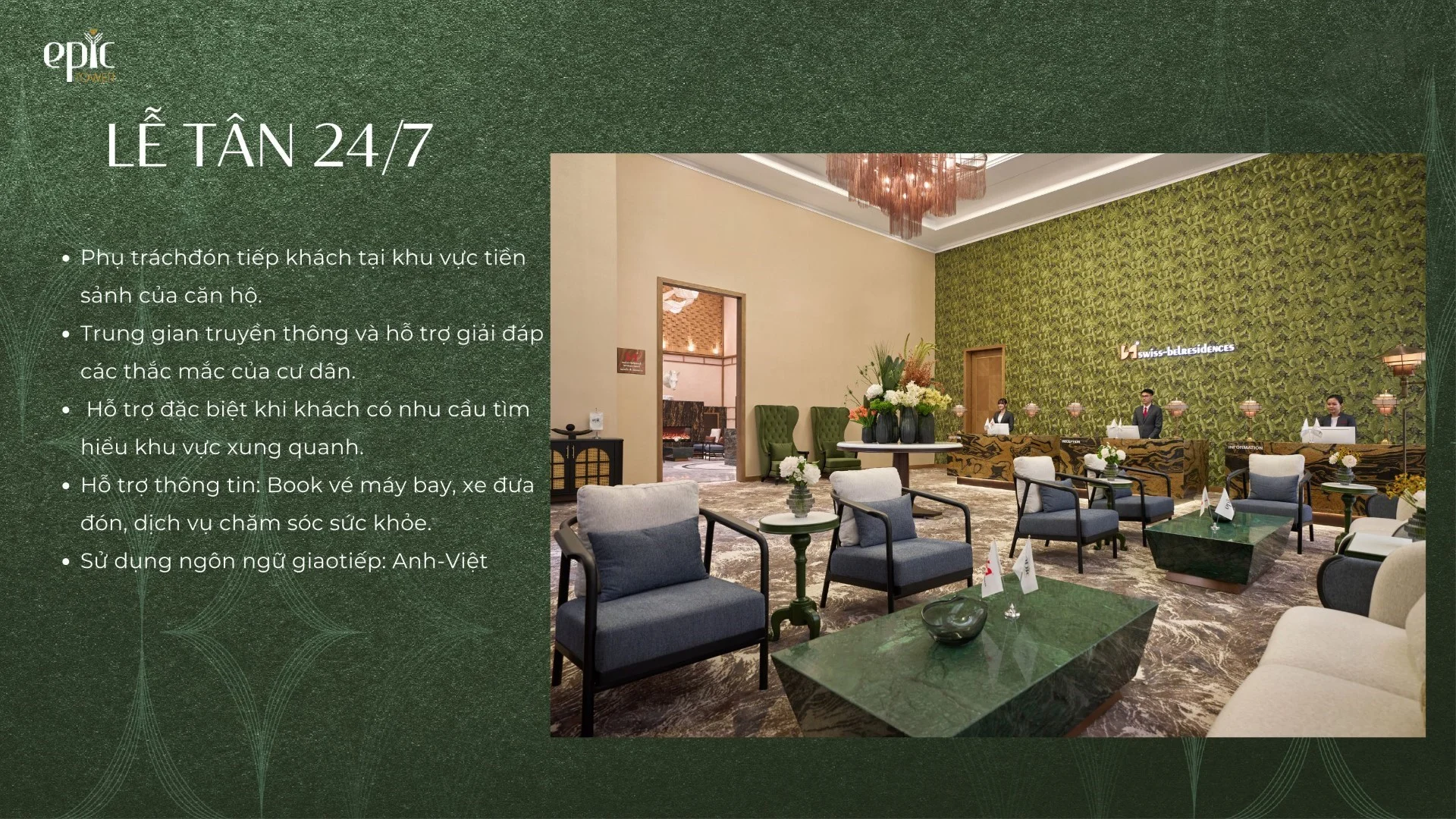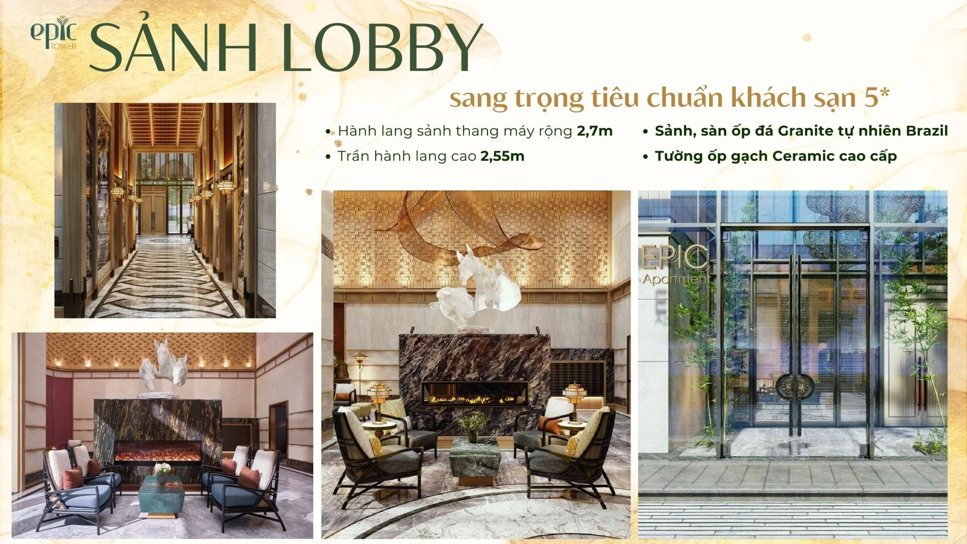 Sảnh lễ tân cao cấp tại Epic Tower có thể giúp giải đáp cho cư dân và khách hàng