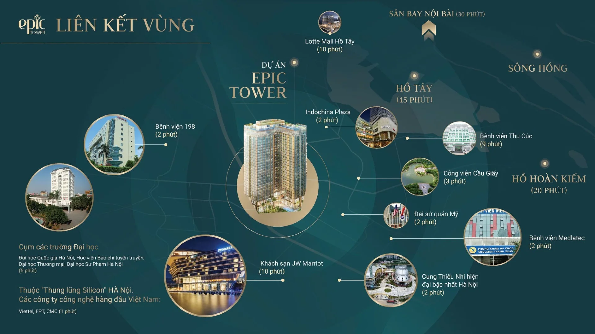 Epic Tower nằm trong khu vực trung tâm giáo dục của quận Cầu Giấy, chỉ trong bán kính 4km xung quanh dự án là hàng loạt các trường học như Trường song ngữ quốc tế Hanoi Academy; một loạt trường Đại học hàng đầu: Đại học Sư phạm, Đại học Quốc gia Hà Nội, Học viện Báo chí tuyên truyền, Ngoại ngữ, Thương mại…