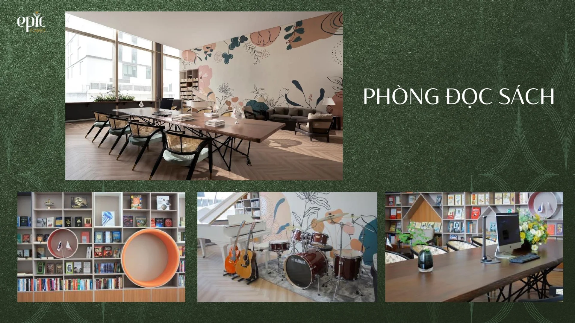 Tiện ích phòng đọc sách tại tầng 2 Epic Tower với đa dạng đầu sách cho cả người lớn và trẻ em