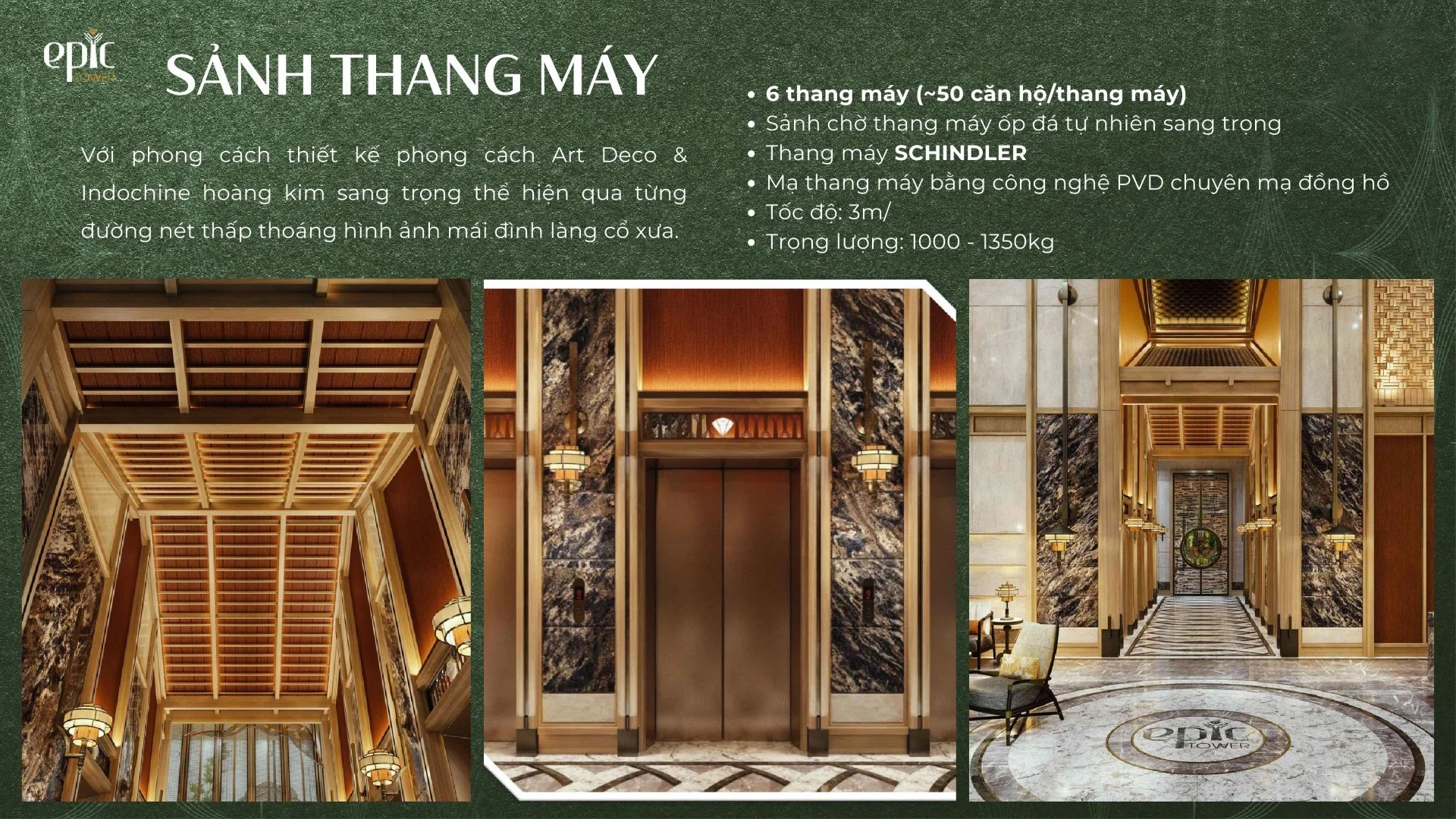 Epic Tower có mật độ 50 căn hộ/thang máy, dùng hệ 6 thang Schindler tốc độ cao