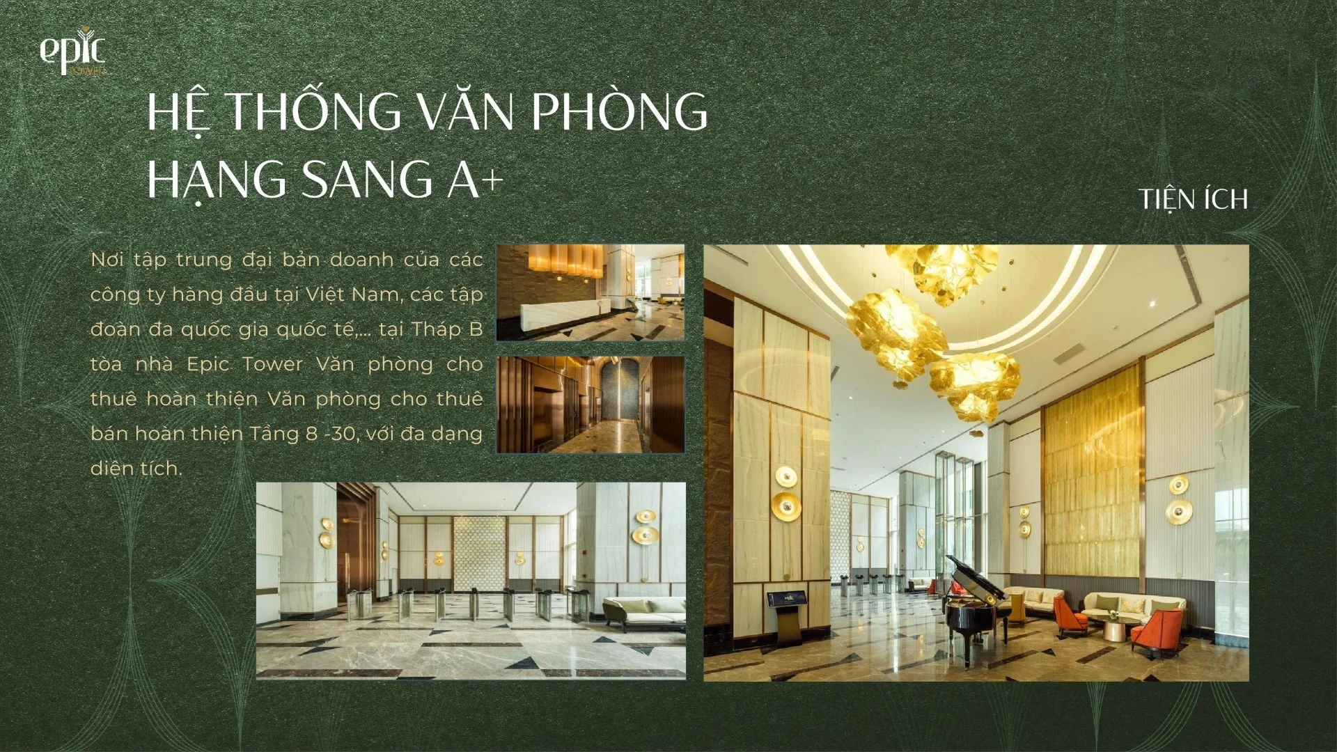 Hệ thống văn phòng hạng sang A+ tại Epic Tower mang đến cơ hội đầu tư cho thuê vượt trội